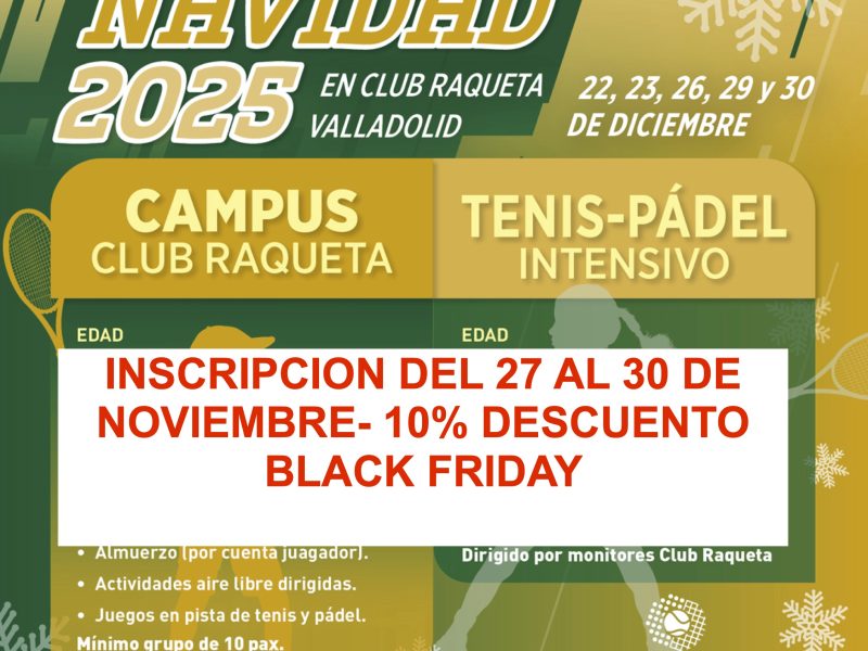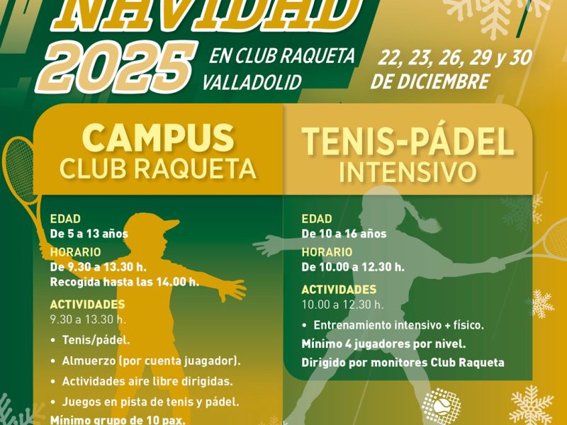 Os presentamos el STAGE DE NAVIDAD 2025 Este año traemos muchas novedades: Horario de 9:00 a 13:30h Grupos por niveles 2,5 horas de entrenamiento técnico 1 hora de preparación física específica 1 hora de situaciones de partido Posibilidad de inscribirse por días o semanas Fechas: Semana......