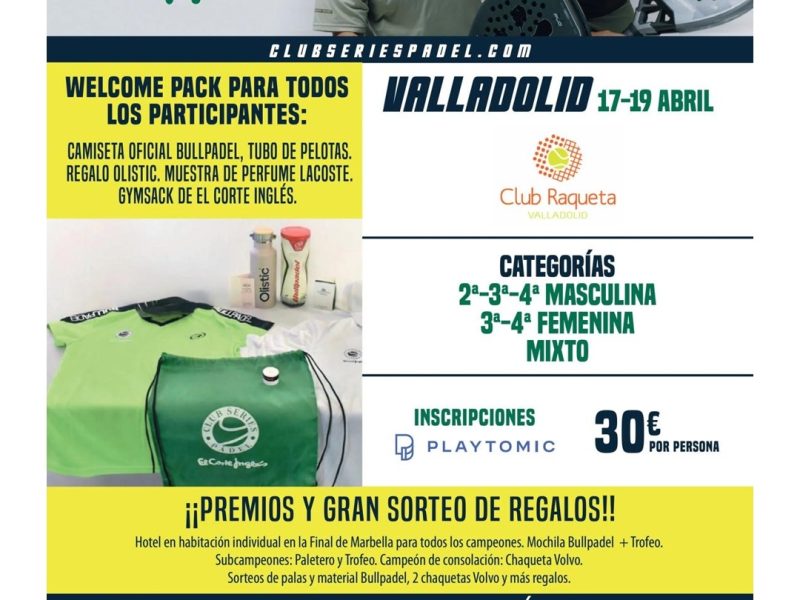 Volvemos a enviar la convocatoria, por error en el cartel. FECHAS. 17,18 Y 19 DE ABRIL, 2026 ¡Todo listo para recibir a nuestros amigos de Club Series Pádel El Corte Inglés! 17, 18 y 19 de abril Categorías: Masculina, Femenina y mixta WelcomePack premium......