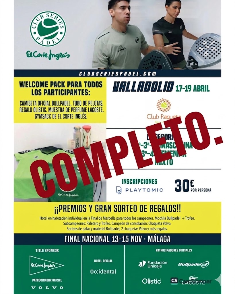 15 Abr Club Series Pádel El Corte Inglés , 17, 18 y 19 de abril, en Club Raqueta- Todo completo